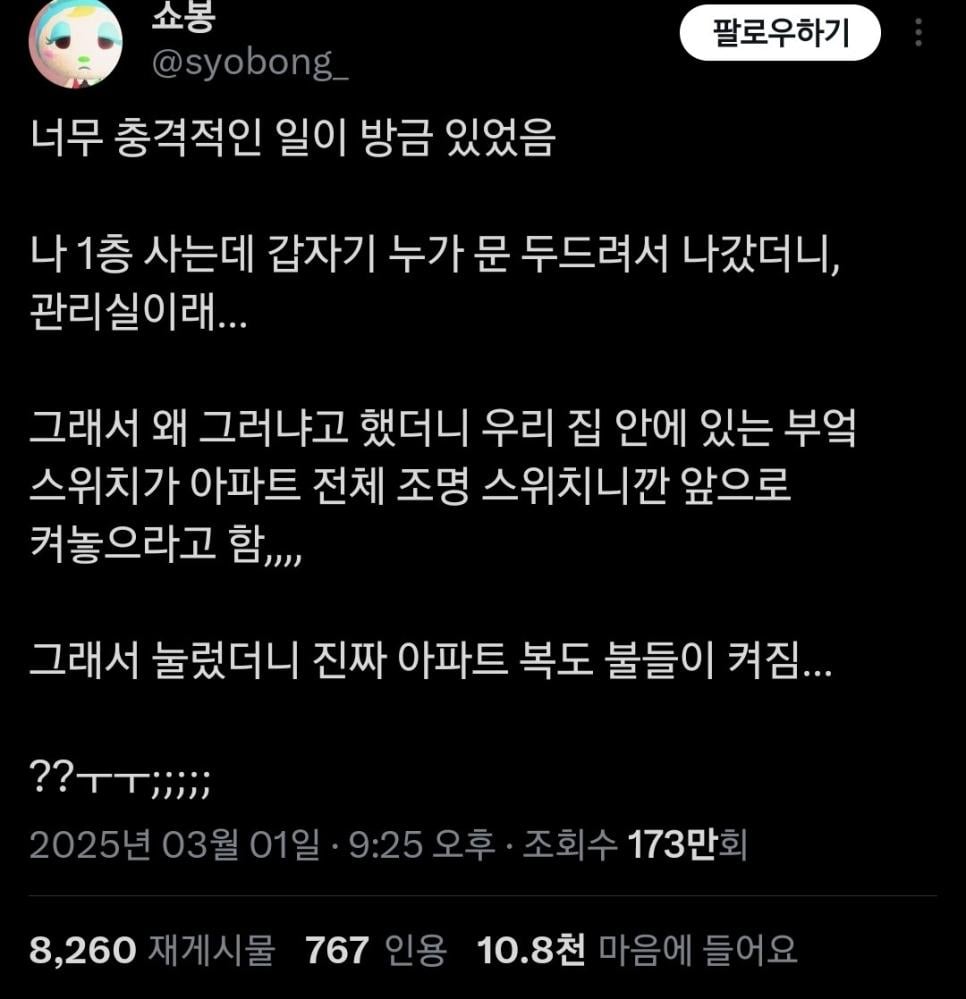 관리실에서 우리 집 부억 불 켜놓으래