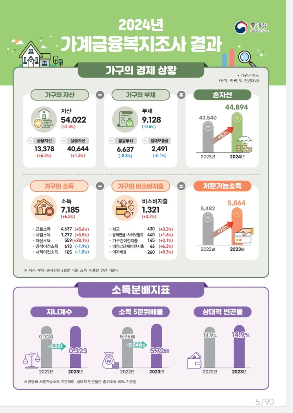 [기타] 통계청 2024년 가구당 평균 자산 및 소득.jpg rh1 0 1041 0 2025.03.04 07:45 가구당 자산 5.4억 (순자산 4.5억) 가구당 소득 7185만원 0