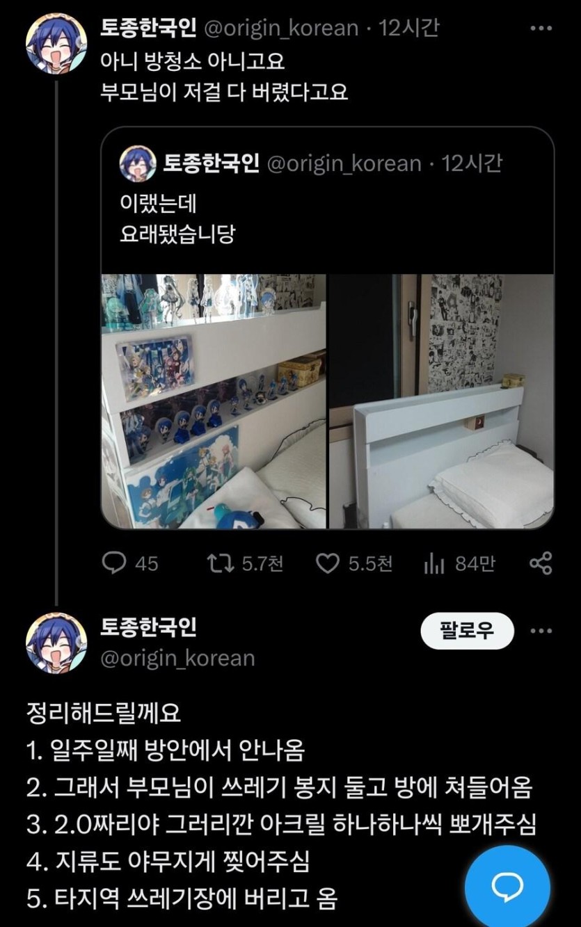 자식 굿즈 싹다 버린 부모