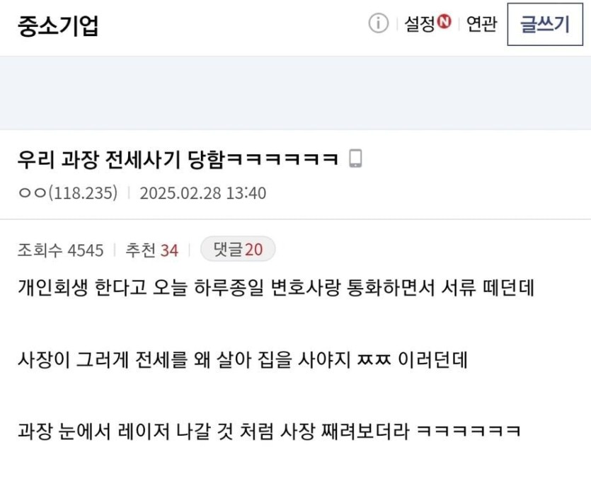 전세 사기 당했다는 회사 과장님