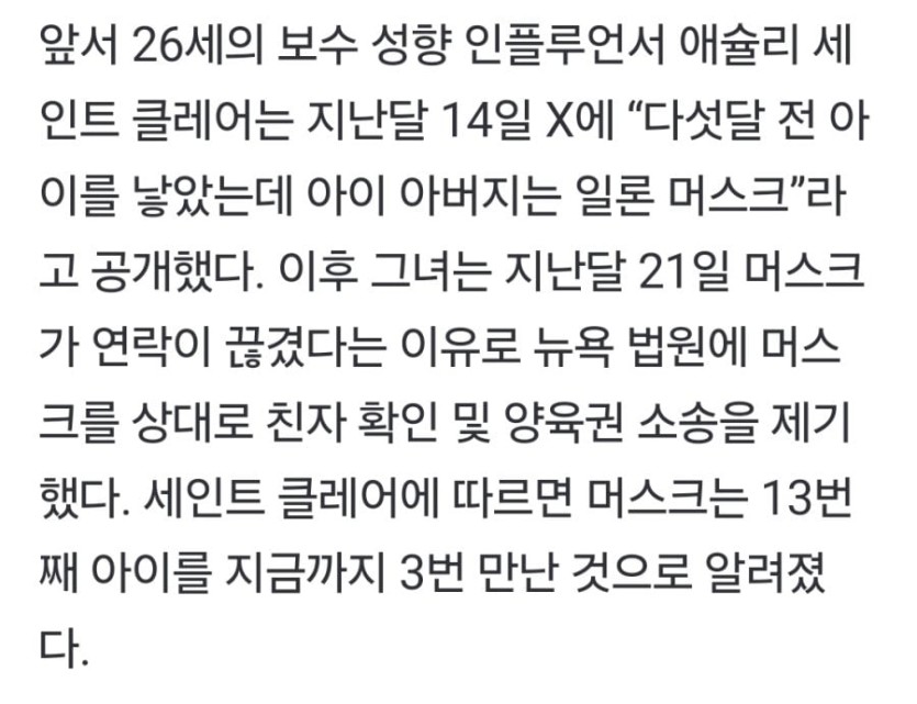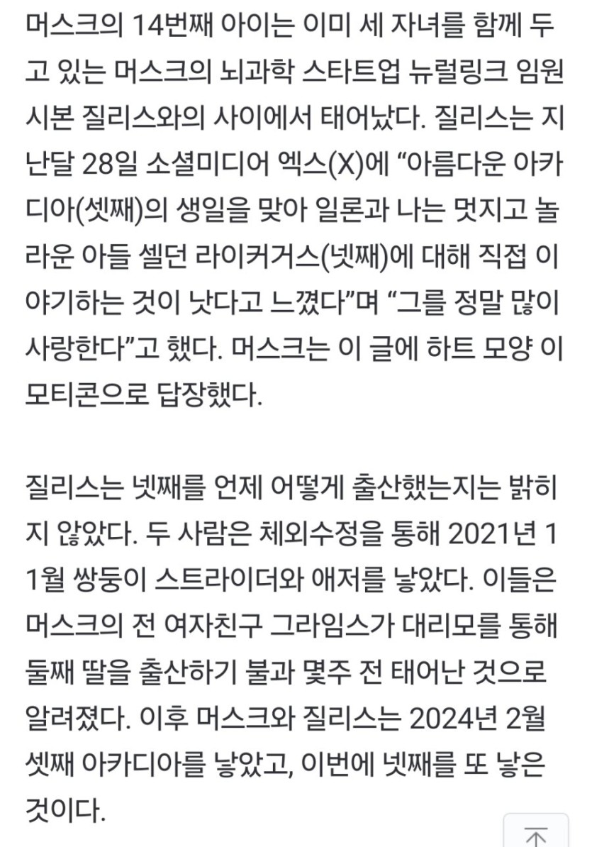 14번째 아빠 됬다는 일론 머스크 근황 rh1 0 1139 0 2025.03.03 16:15 자기 회사 여자 임원이 머스크 정자 받아서 아들 출산했다고 한국에서는 상상도 못할일들이.. 14번째 아빠 됬다는 일론 머스크 근황 0