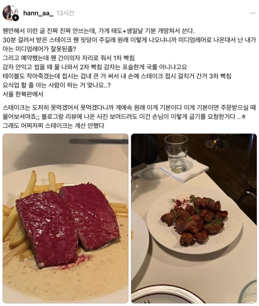 소소한 논란 중인 미디엄 레어 스테이크.jpg