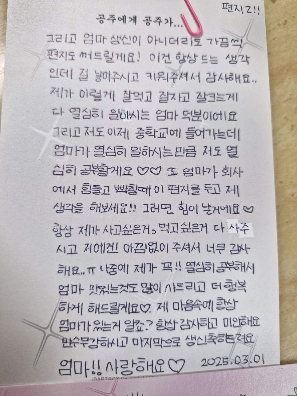 회사일 힘들다 했더니 딸래미가 편지 써 줬어