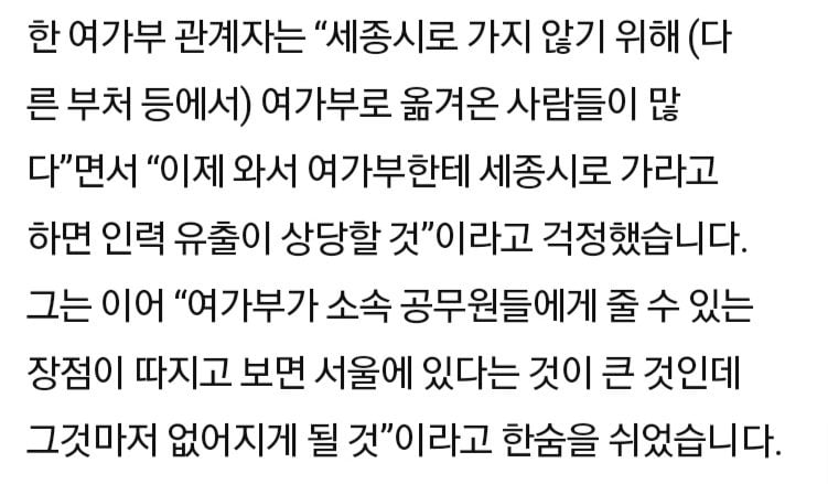 지방은 죽어도 못가겠다는 어느 부처 공무원들 ㄷㄷㄷ rh1 0 178 0 2025.03.03 03:00 "세종시로 가지 않기 위해 옮겨온 사람들이 많다""세종시로 가라고 하면 인력 유출이 상당할 것""여가부가 소속 공무원들에게 줄 수 있는 장점이 따지고 보면 서울에 있다는 것이 큰 것" "인원 적어 법 제정 때 깜빡"했다 농담하는 윗대가리 스윗 틀딱새끼들ㅋㅋㅋ 0