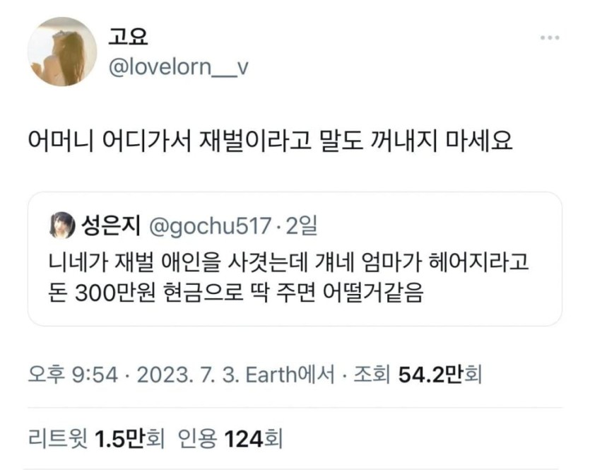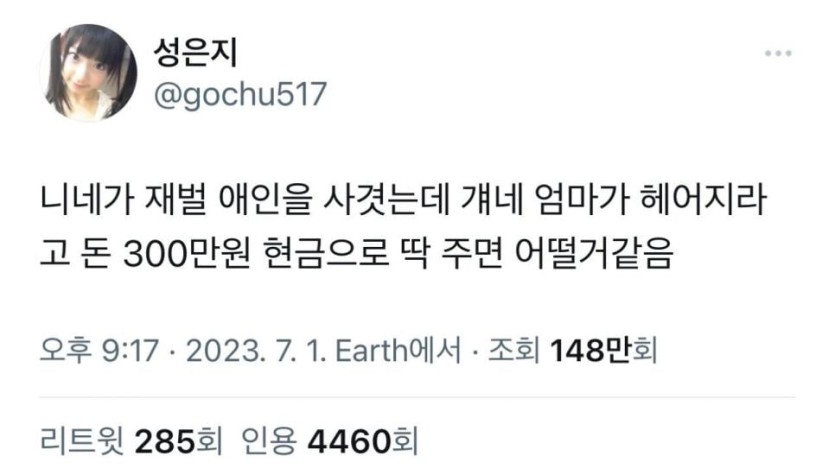 니네가 재벌 애인을 사겻는데 걔네 엄마가 헤어지라고ᆢ