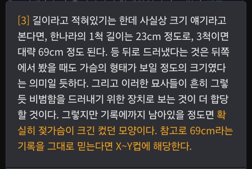 삼국지에 나오는 코끼리 탄 거유 여전사 rh1 0 203 0 2025.03.02 20:45 "젖 가슴 길이가 3척(69cm)이라서 가슴이 등 뒤로 드러내었다" 대충 뒤에서 보면... X컵 크기 0