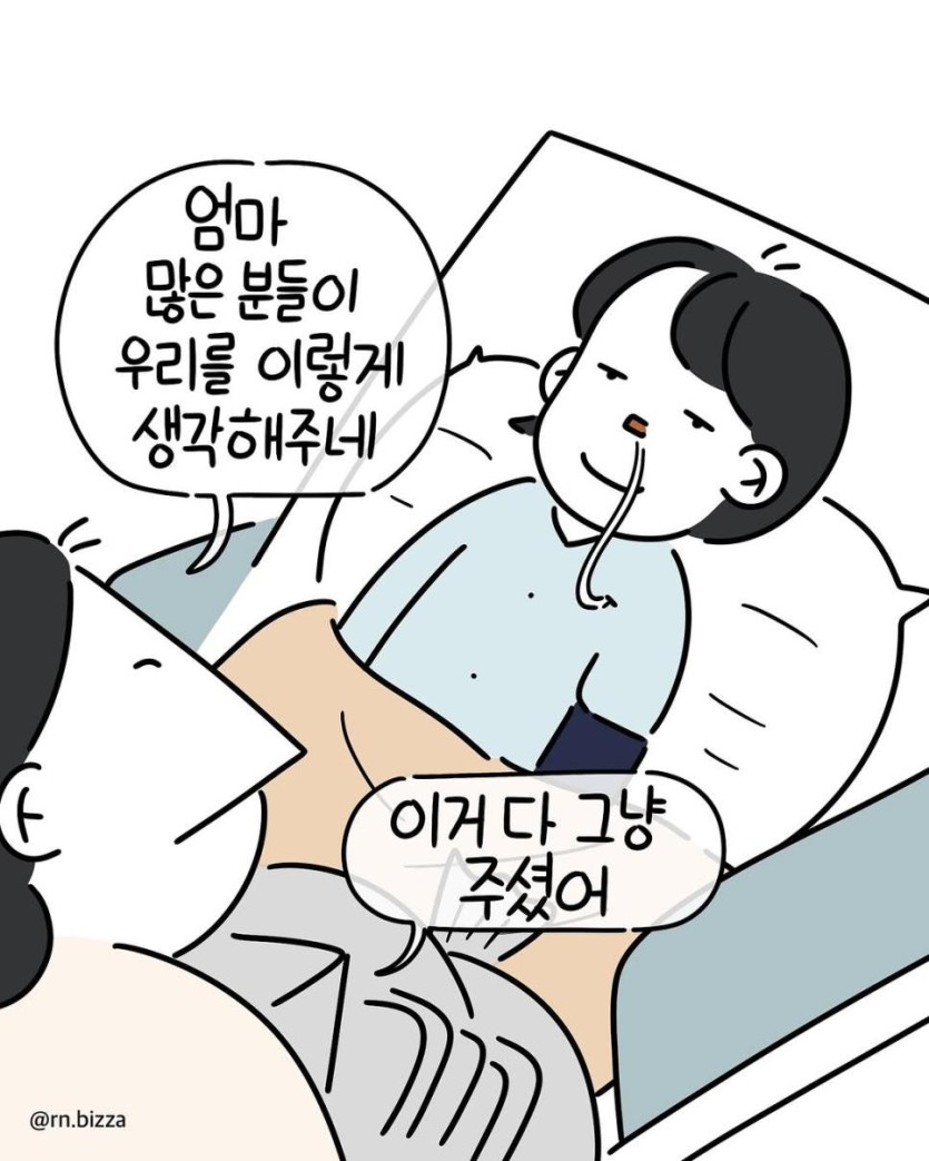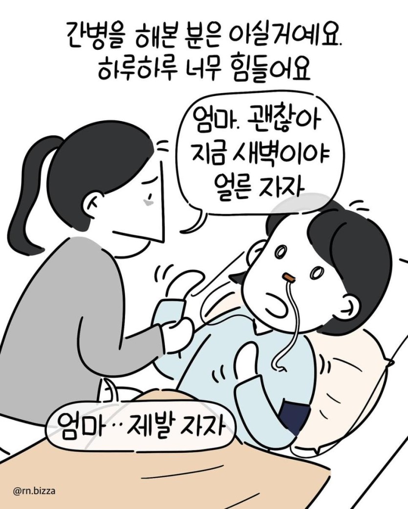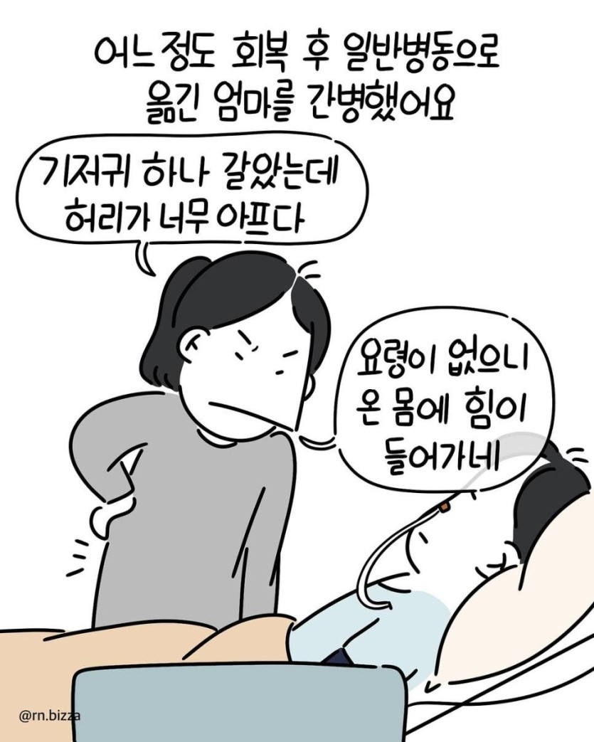 췌장염에 걸린 상태로 어머니를 간병하는 딸.Manhwa