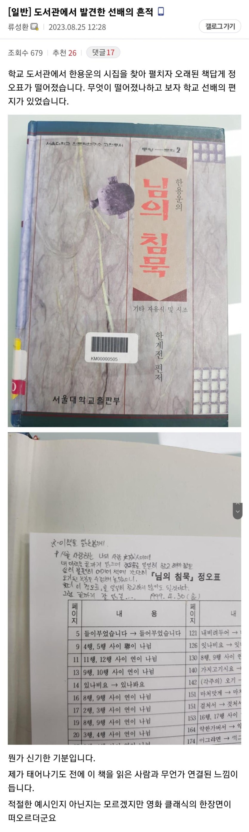 도서관에서 발견한 선배의 흔적