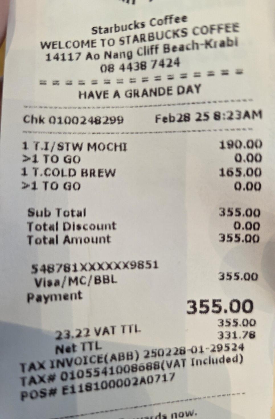 태국의 스타벅스 가격
