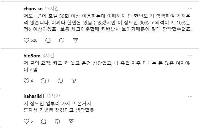 호텔키 반납을 깜빡한 사람 ㄷㄷㄷ;;