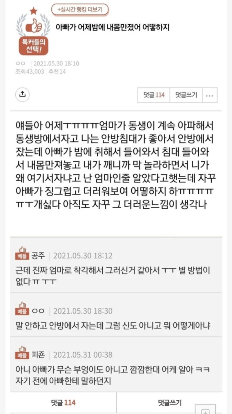 아빠가 어젯밤에 내몸 만졌어