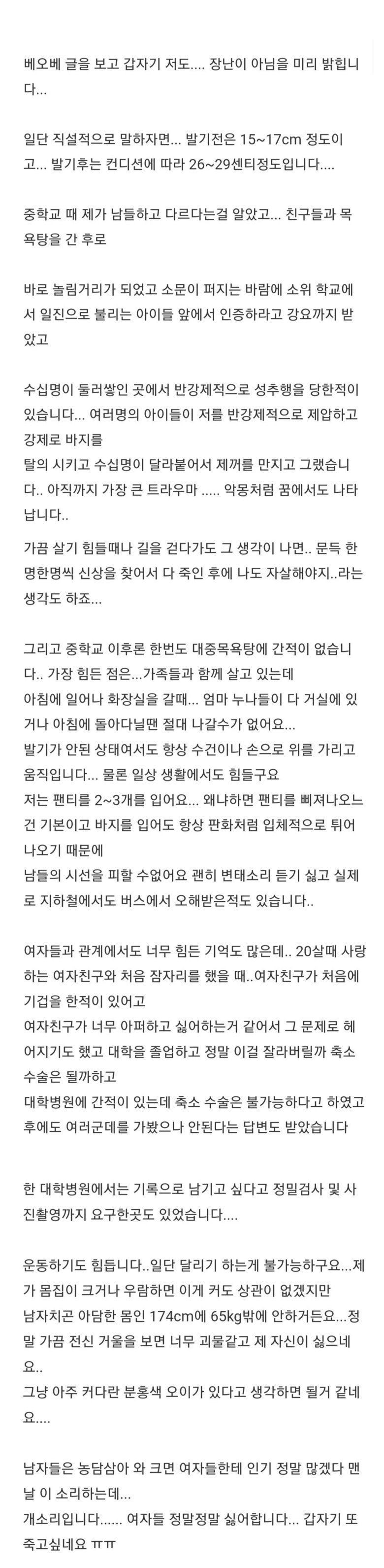 꽈추가 너무 커서 죽고 싶을만큼 고민인 남자
