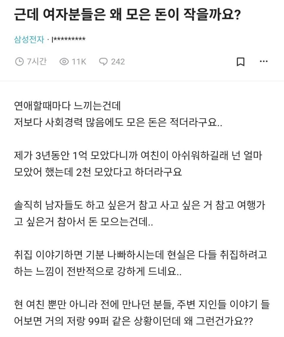 블라) 근데 여자분들은 왜 모은 돈이 작을까요?.jpg