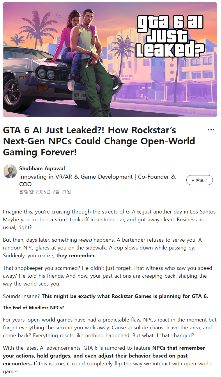 GTA6 에 적용될 Ai기술 ㅎㄷㄷㄷㄷ