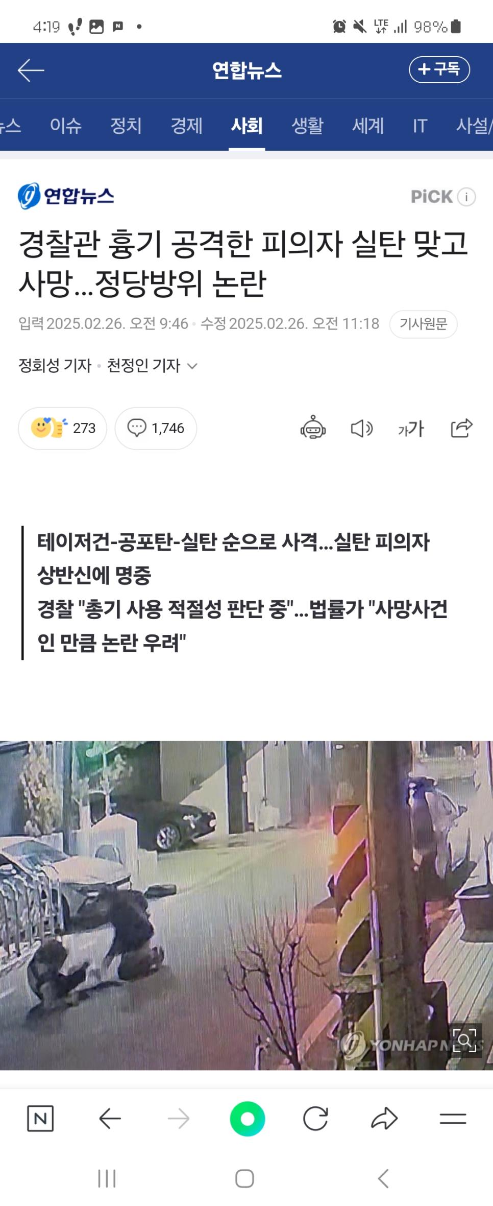 [경찰 총쏜거 ] 이번건 정당방위 해주자 정말.. rh1 0 203 0 2025.02.28 15:45 누가 칼들고 따라온다고 사람 있다고 신고 접수됨 ↙->경찰이 칼 내려놓으라고 여러번 경고 ↙->말 안듣자 테이저건 날림 ↙->맞고도 멀쩡(두꺼운 외투때문으로 추정)↙->경고용으로 허공에 공포탄 발사 ↙->범죄자가 경찰 얼굴, 상반신 칼로 수차례 찌름 ↙->경찰이 실탄 3발 사격->명중범죄자는 사망하고 경찰은 병원이송/중태상태임이거 정당방위 아니면 대한민국 경찰 다 그만둬야 맞지 ...목숨 2개 아닌데 내 아들이 경찰이라도 관두라 하긋네요 ..( 아 아들없지.) 0
