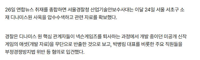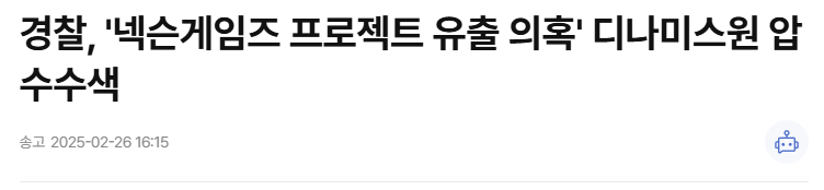 경찰,'넥슨게임즈 프로젝트 유출 의혹' 디나미스원 압수수색 rh1 0 149 0 2025.02.28 11:15 예전에 블루아카이브 핵심인력들이 갑자기 퇴사하면서디나미스 원 회사를 만들고, 그 후 만든 프로젝트 KV가 있었는데경찰에서 넥슨 미공개 IP 프로젝트 에셋을 디나미스 원에서 무단으로 반출한거 같아서 압수수색 하고대표를 입건했다고 함닼닼건 끝나가는거 같으니 이것도 빡세게 잡기 시작한듯 0