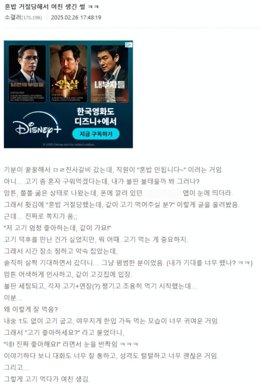[유머] 혼밥 거절당해서 여친 생긴 썰