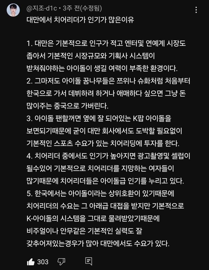[유머] 한국 치어리더들이 대만으로 가는 이유 ㄷㄷㄷ.jpg rh1 0 159 0 2025.02.28 00:15 한국에서 최초로 대만으로 진출한 이다혜는 대만에서 코카콜라, 아이스크림, 게임, 편의점, 휠라, 전자제품매장, 불닭볶음면, 갤럭시 워치, 밀크티, 음료, 화장품, 영양제, 배달앱 등등의 광고를 찍었다 ㄷㄷㄷ 0