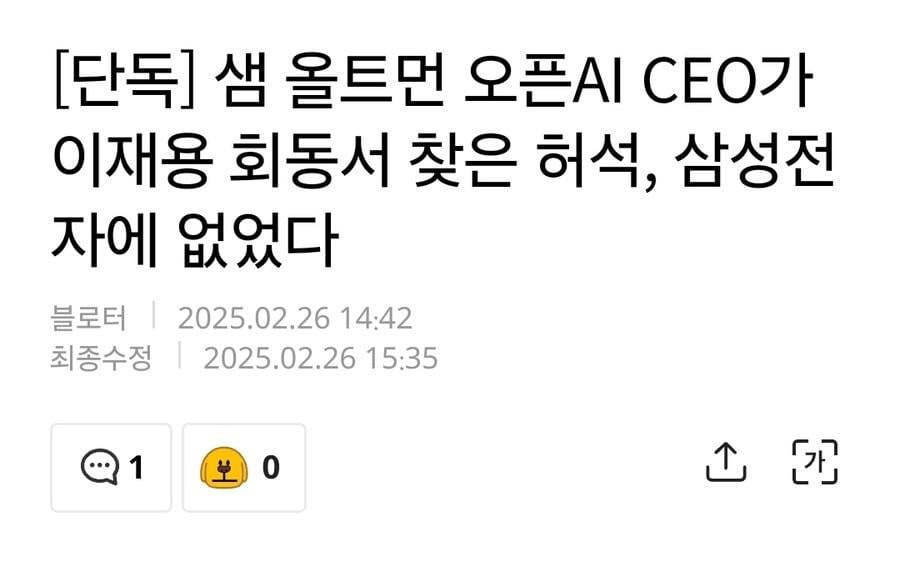 삼성전자가 진짜 개좃망하고있다는 증거ㅋㅋㅋ rh1 0 417 0 2025.02.27 18:15 샘알트먼이 거 삼성전자에 있다는 전문가 그분 좀 보죠 했는데실은 퇴사한 사람이었고경영진은 아무도 모르고있었음시.발 삼전 주식 버려 빨리! 0