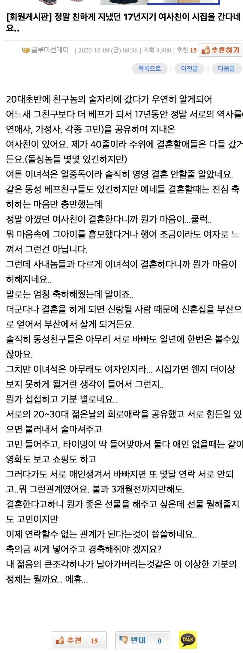17년지기 여사친이 시집을 가는데 씁쓸하네요...