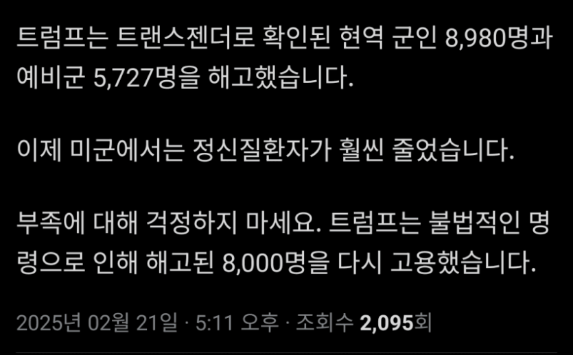 [정보] 미군, 트랜스젠더 군인 14,707명 해고