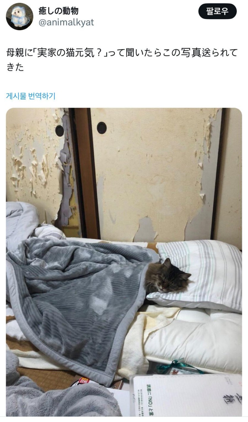 어머니께 고양이는 잘 지내? 라고 물어본 결과