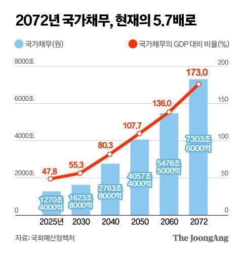 국민연금 2057년 고갈 전망 2072년엔 '국가채무 7300조'.jpg