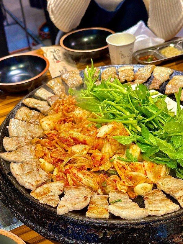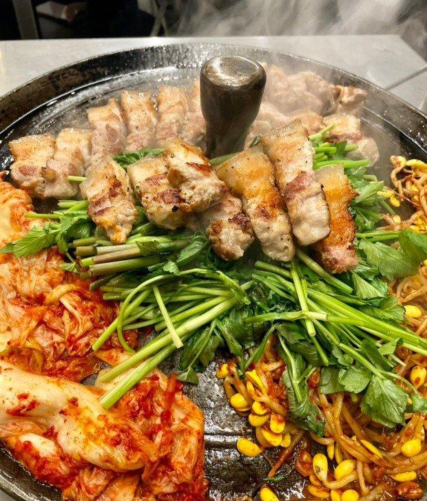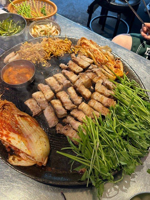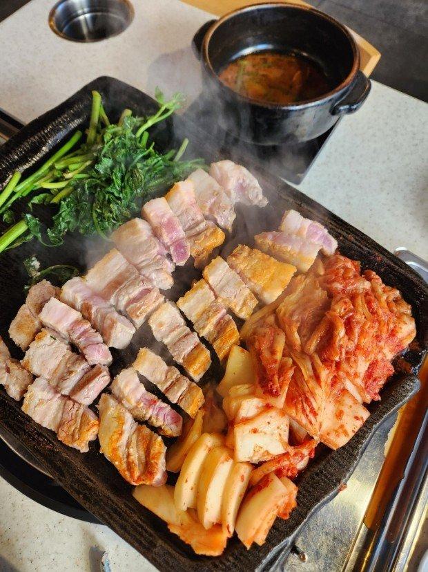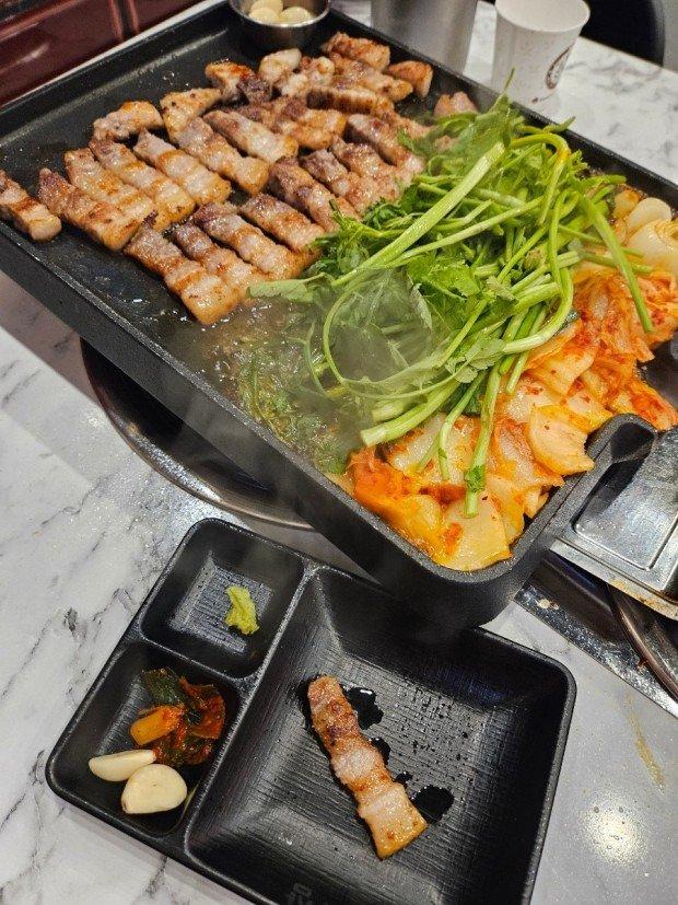 미나리 김치 삼겹살