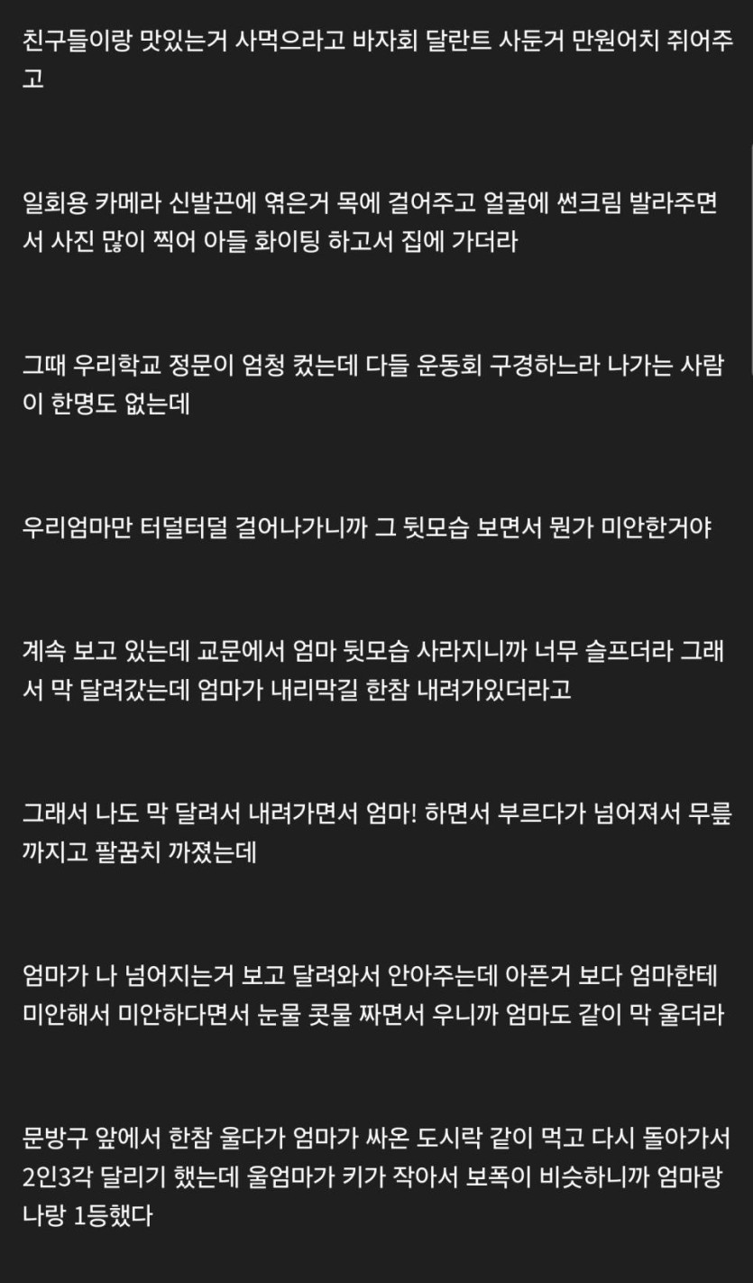 어릴때 운동회에서 엄마 마음 아프게한 디시인 ㄷㄷㄷ..JPG