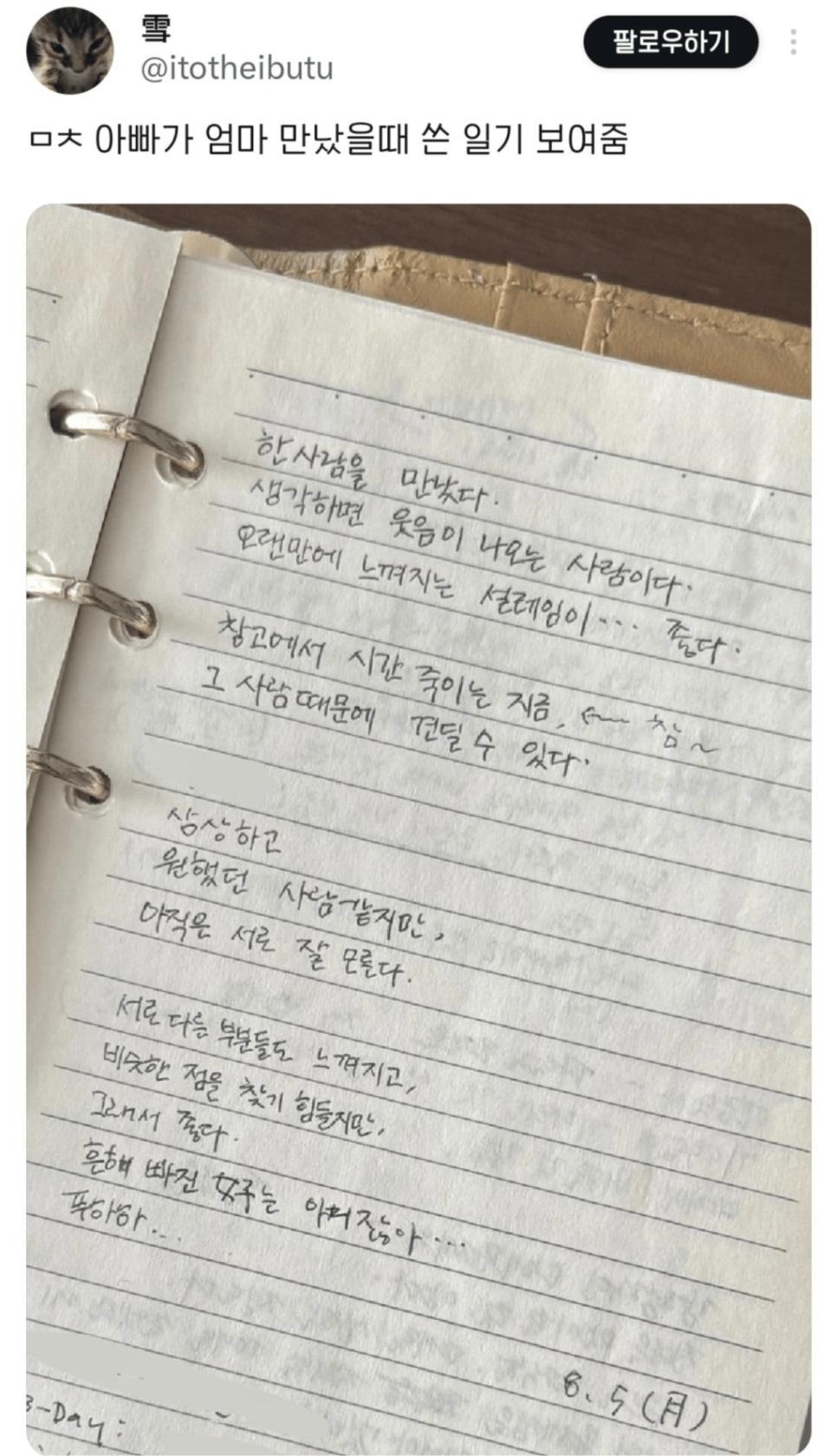 아빠가 엄마 만났을때 쓴 일기