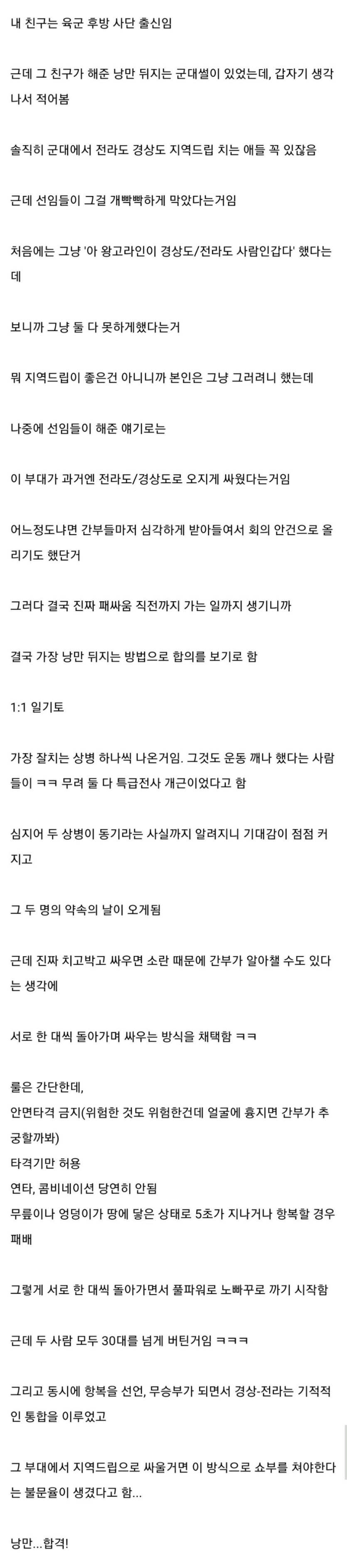 지역드립 문제를 해결한 부대
