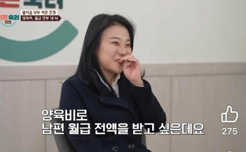 남편 본업 월급 전액을 양육비로 원하는 아내.jpg