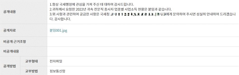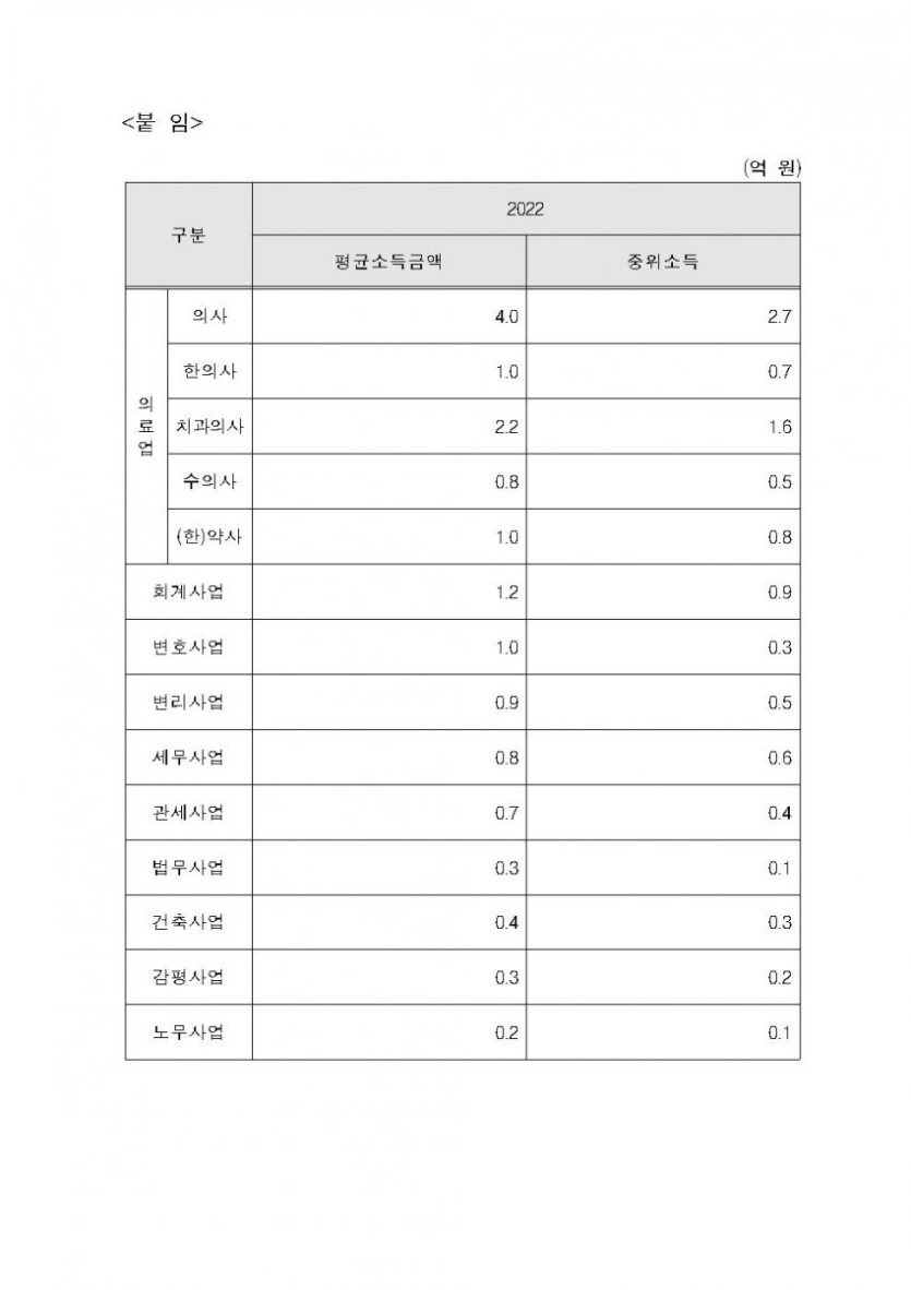 국세청이 답변한 2022년 귀속 전문직 종사자 업종별 사업소득.jpg