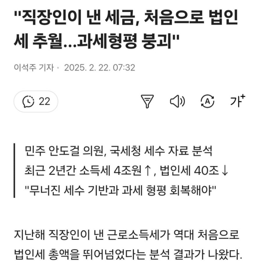 사상최초, 소득세가 법인세 추월 ㄷㄷㄷ