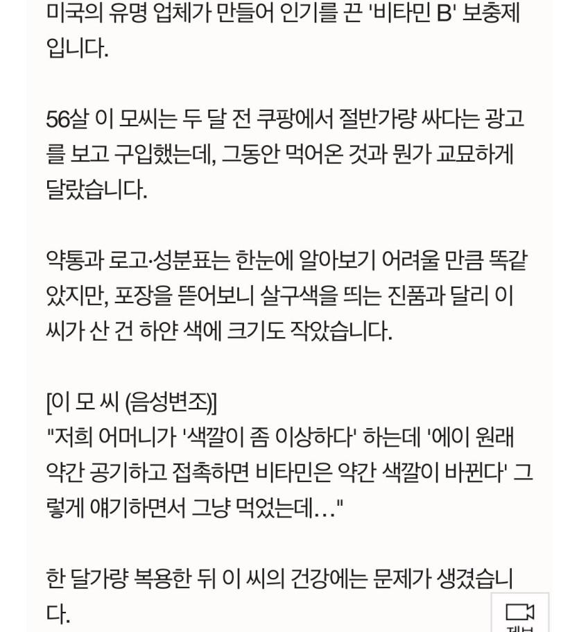 쿠팡만 믿고 영양제 샀다가‥'짝퉁' 먹고 간수치 2배로 rh1 0 134 0 2025.02.22 17:00 https://imnews.imbc.com/replay/2025/nwdesk/article/6687565_36799.html 0