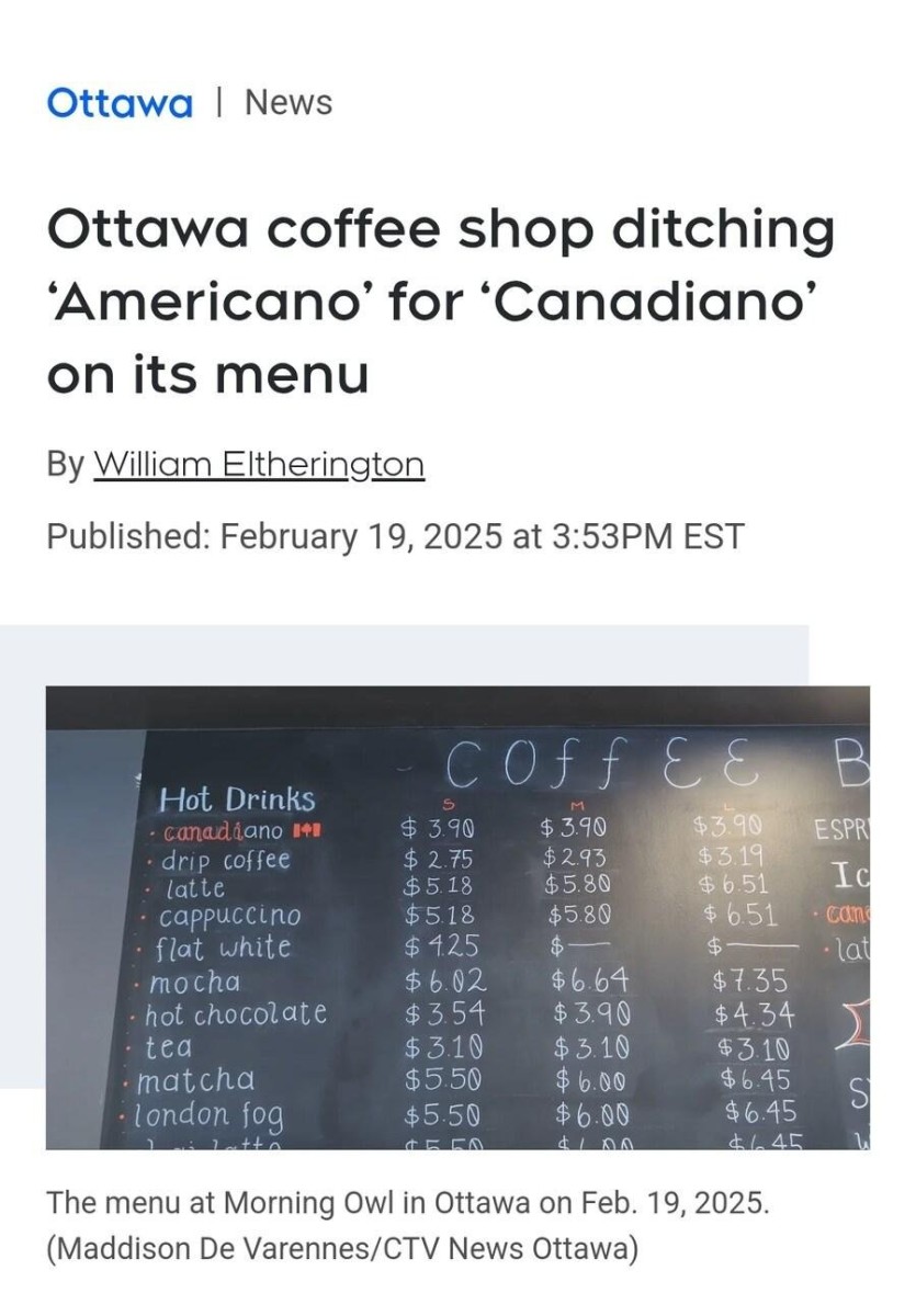 캐나다 커피숍들 아메리카노를 “캐나디아노”로 바꿔서 팔기 시작