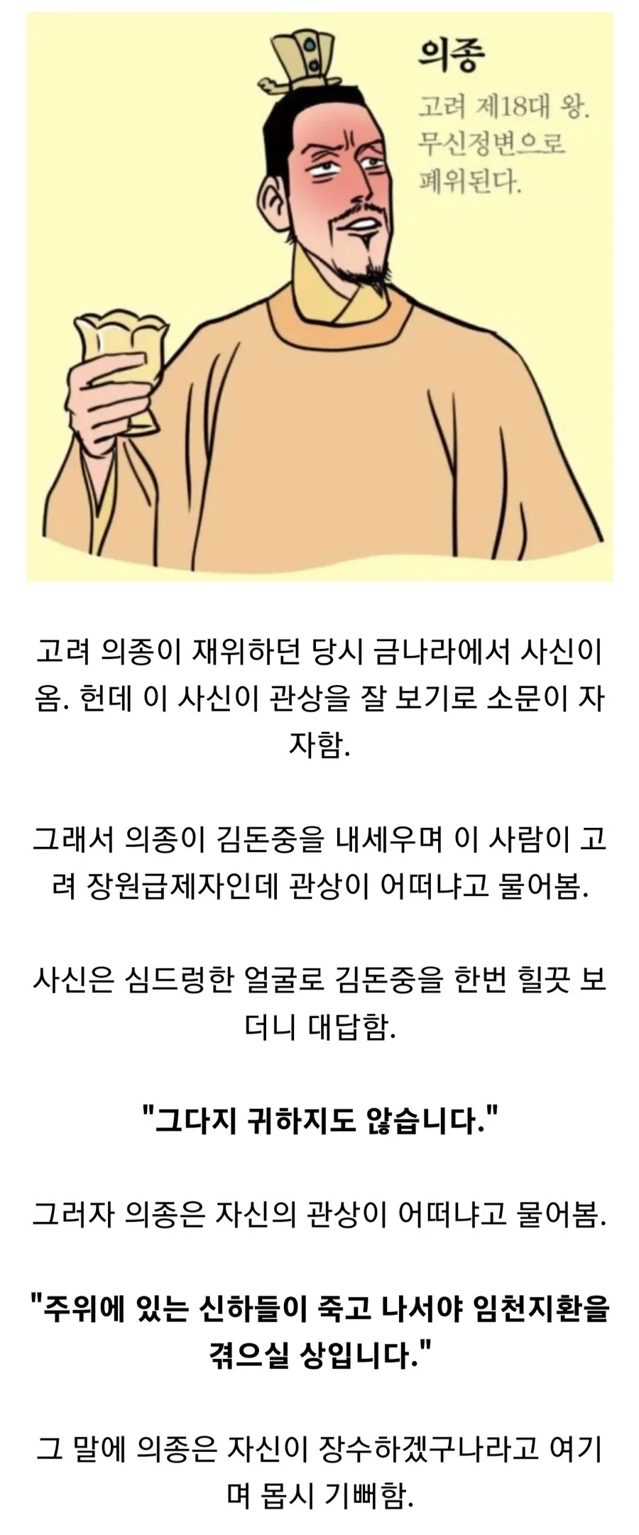 무신정변 직전 고려에 온 관상가가 남긴 말