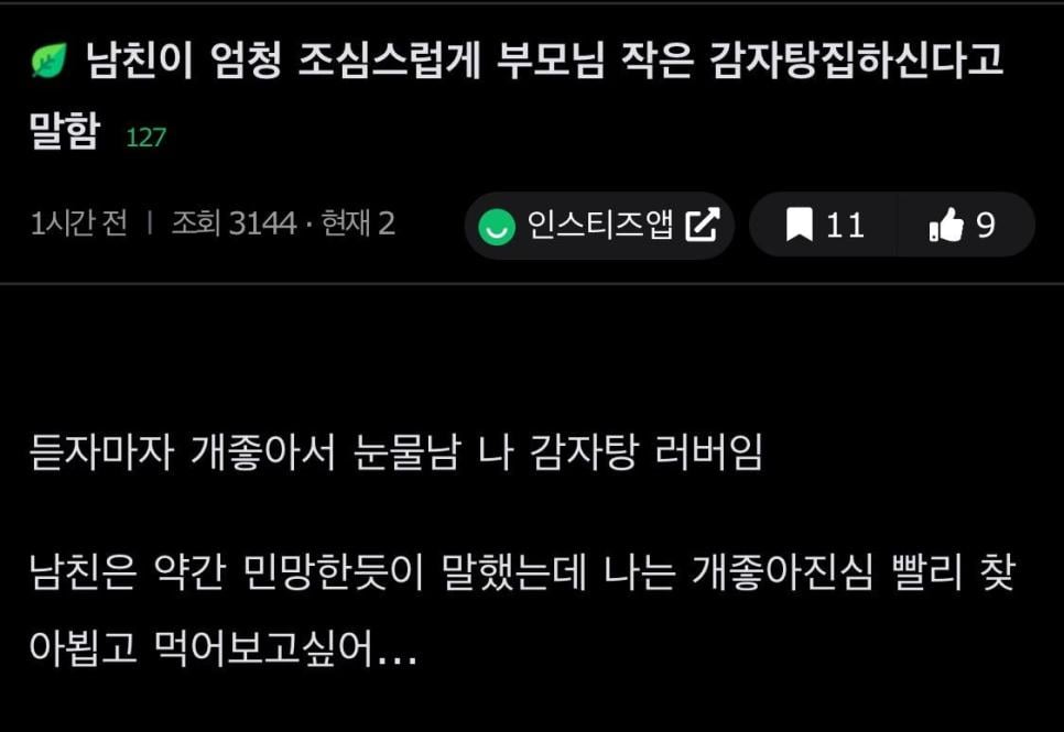 남친이 엄청 조심스럽게 부모님 작은 감자탕집하신다고 말함