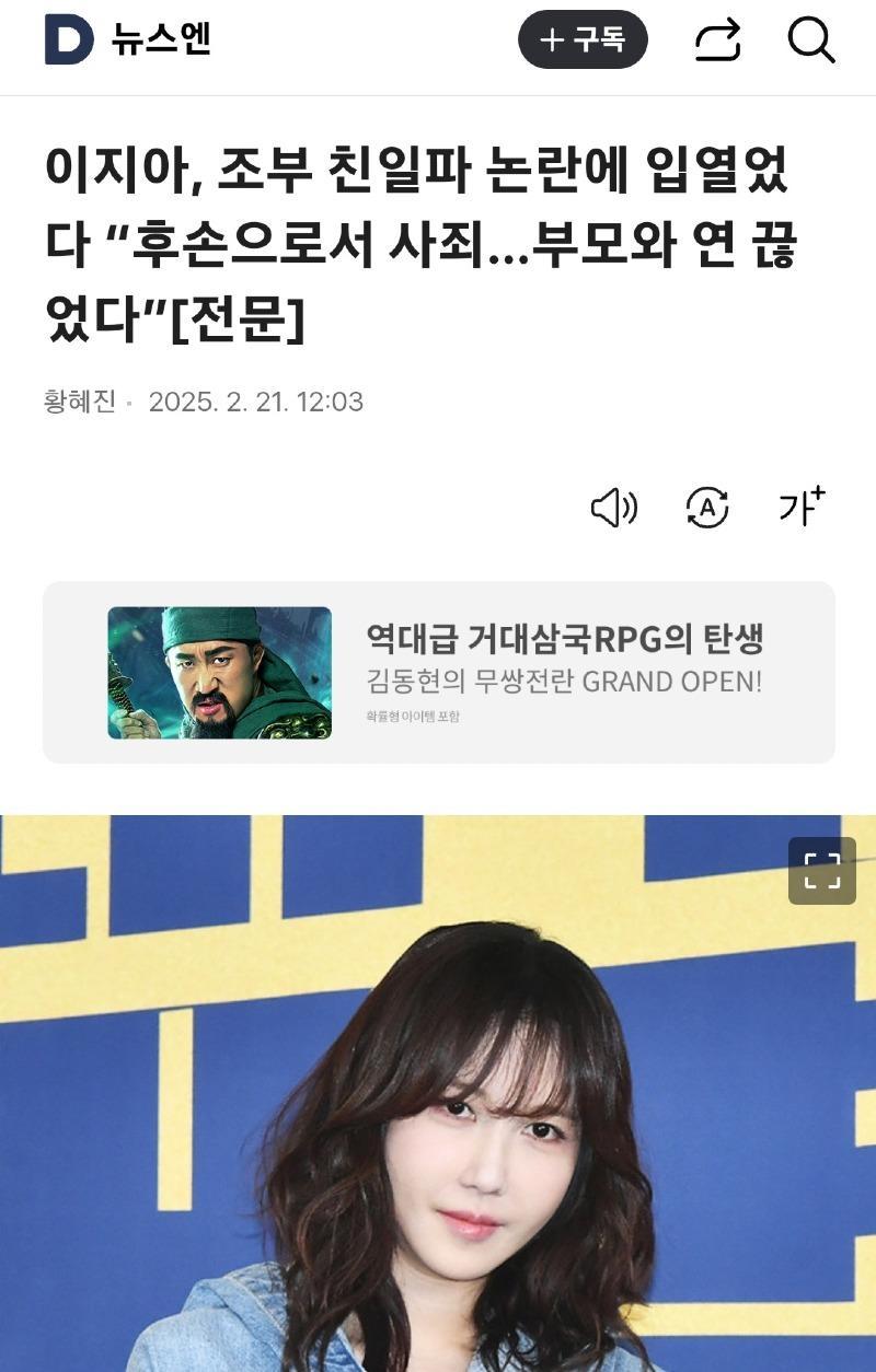 "이지아" 조부 친일파 공식 입장 전문 rh1 0 193 0 2025.02.22 02:00 성격상 정치쪽으로 올릴지연예인겟에 올릴지 고민하다가여기에 올립니다.근래들어 꽤나 깨끗한 입장문이네요 0