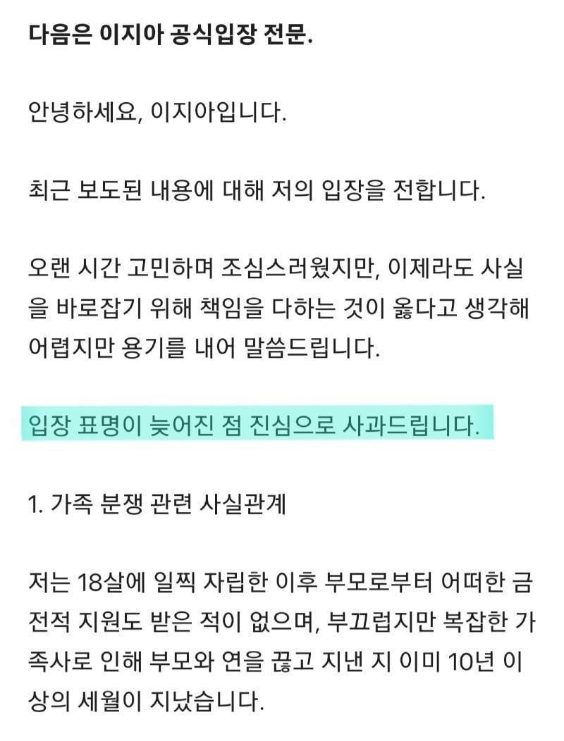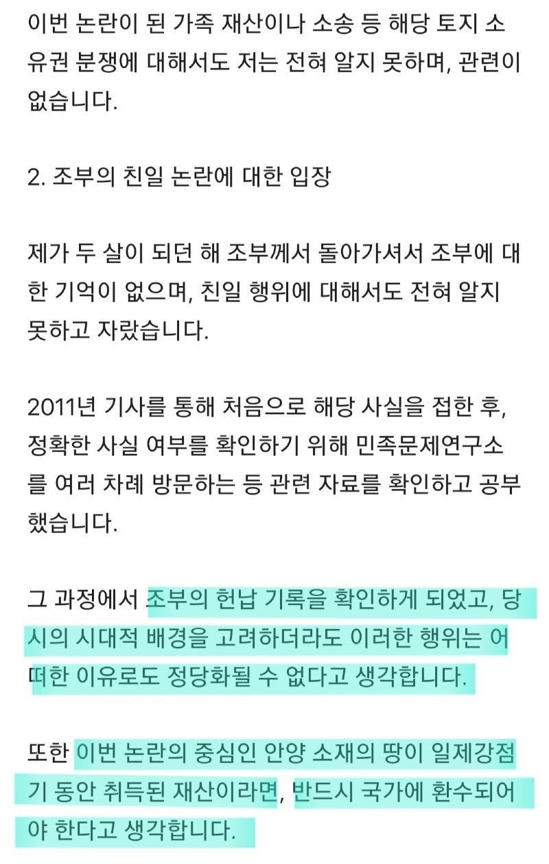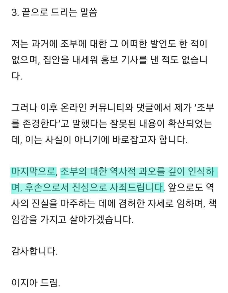 "이지아" 조부 친일파 공식 입장 전문 rh1 0 90 0 2025.02.22 02:00 성격상 정치쪽으로 올릴지연예인겟에 올릴지 고민하다가여기에 올립니다.근래들어 꽤나 깨끗한 입장문이네요 0
