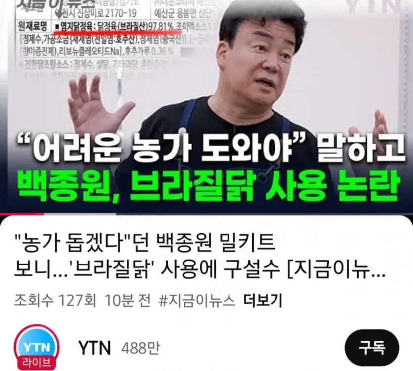 백종원 브라질닭 논란 결국 YTN 입갤 rh1 0 182 0 2025.02.21 20:15 https://ggoorr.net/thisthat/17719425 백종원의 치킨스테이크 밀키트[유머/이슈] 베라딘 2025.02.21 브라... 0