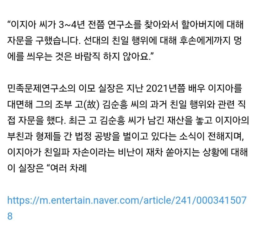 이지아, 조부 친일파 관련 입장문 발표 ㄷㄷㄷ