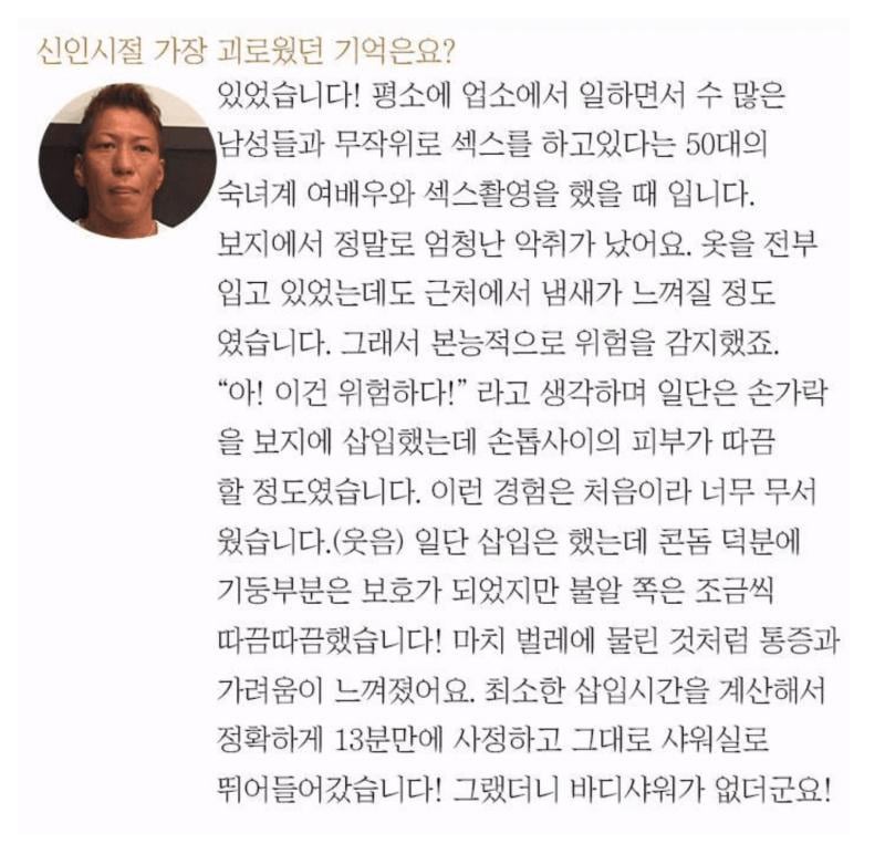 AV배우의 신인시절 가장 괴로웠던 기억