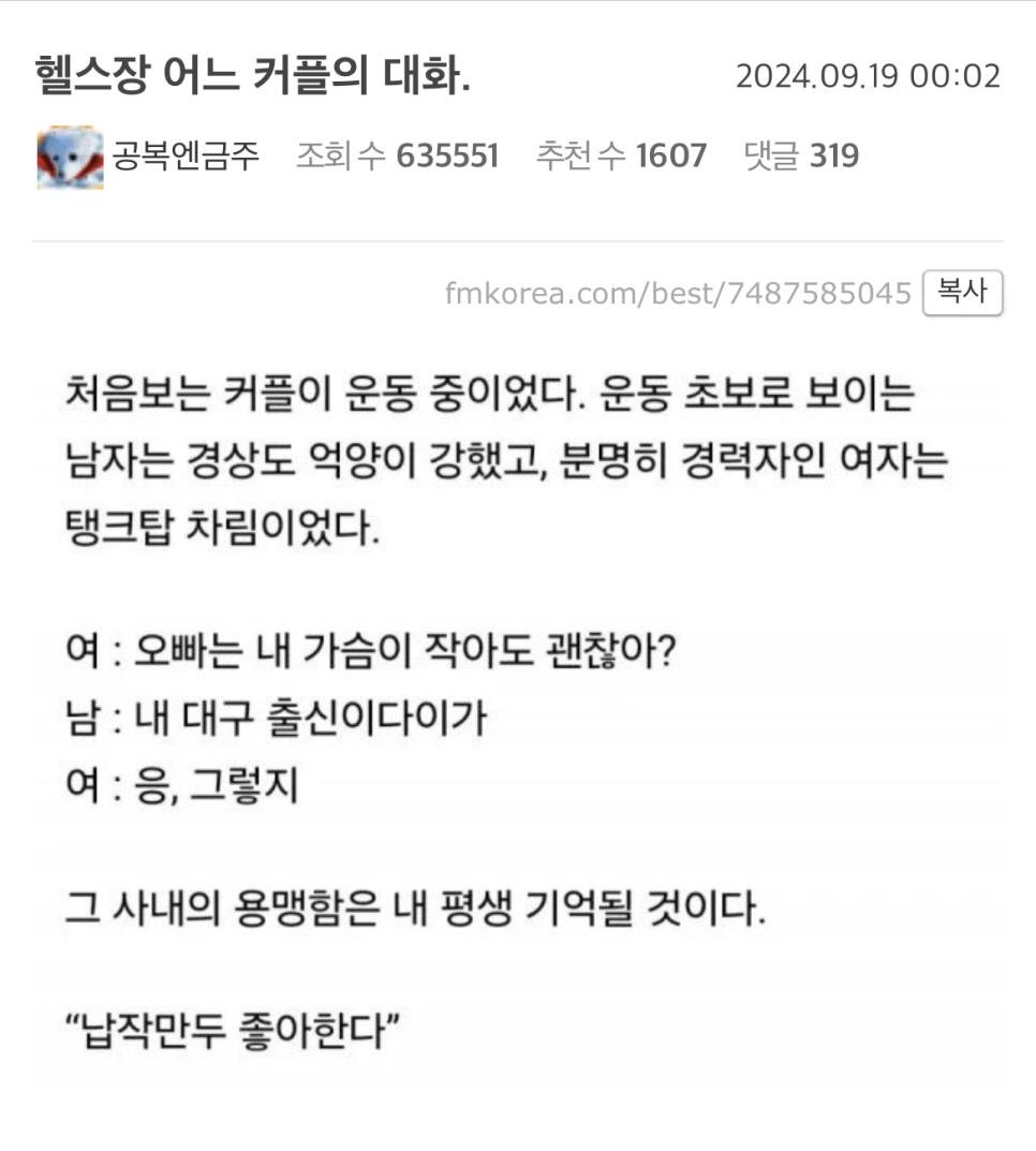 헬스장 한 커플의 대화