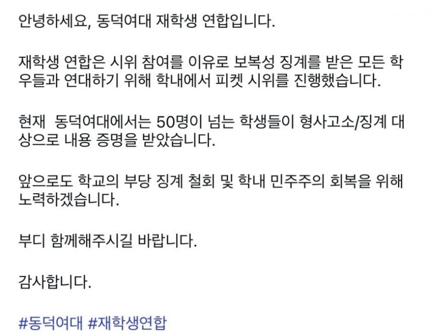 동덕여대 최소 50명 내용증명, 19명 형사고소 진행중