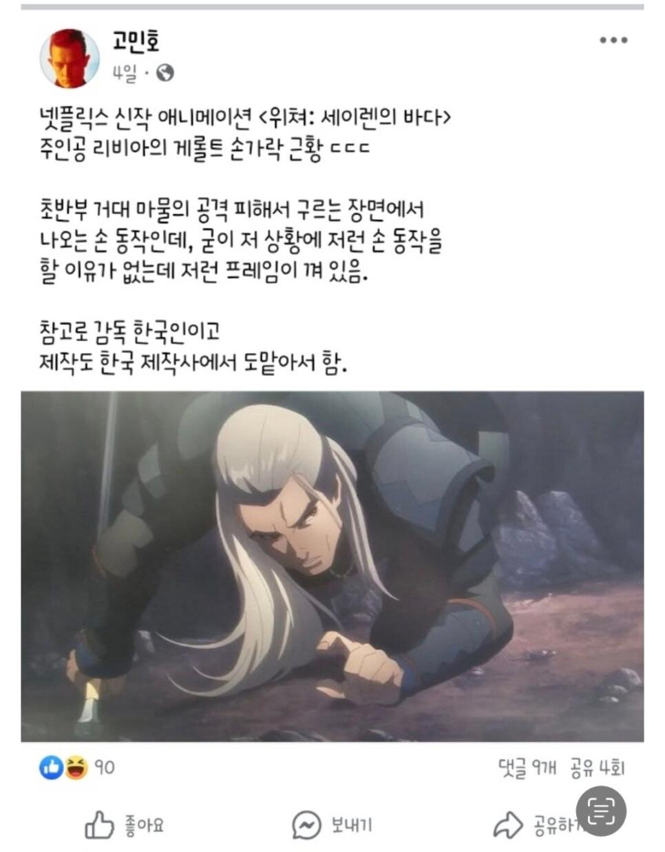 넷플릭스 신작 애니 <위쳐:세이렌의 바다> 손가락 근황