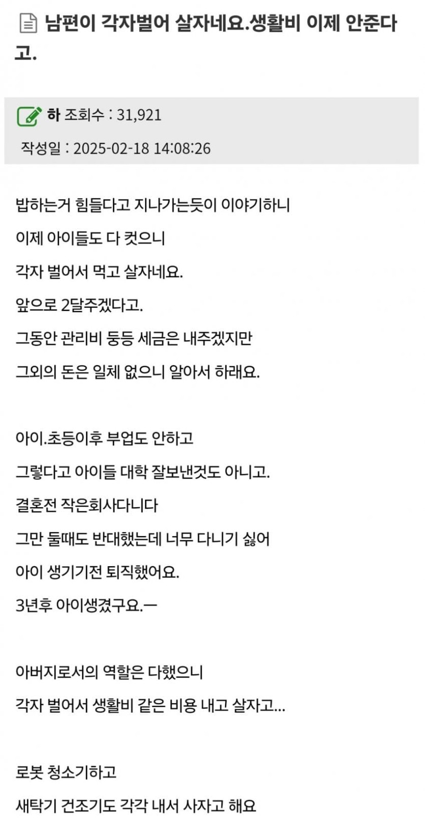 남편이 각자 벌어 살자네요