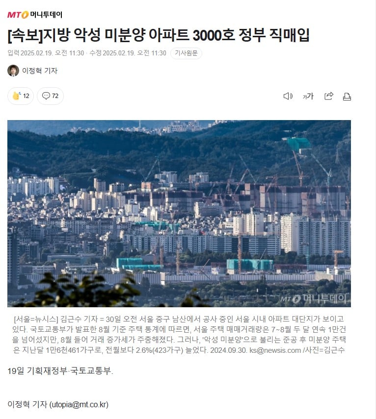 지방 악성 미분양 아파트 3000호 정부 직매입
