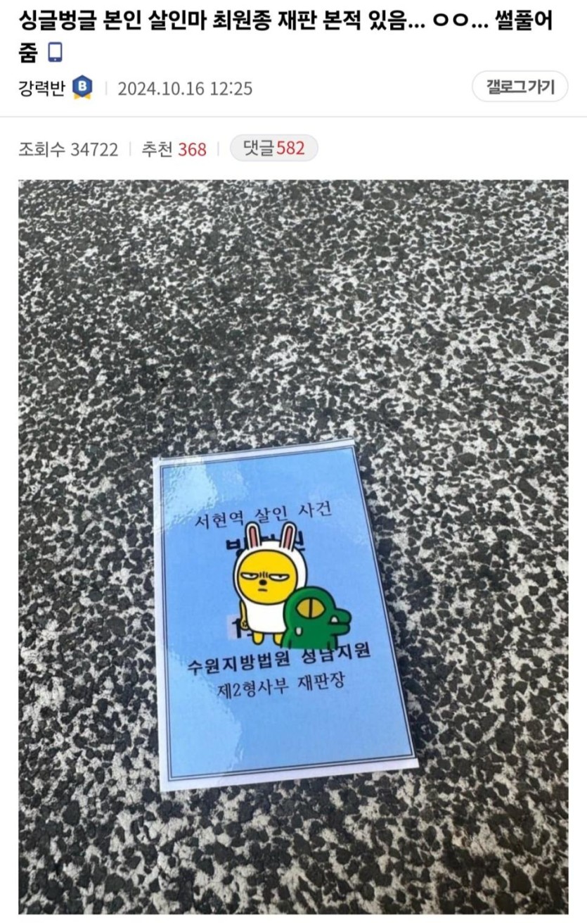 서현역 칼부림 살인마 최원종 재판 직관한 디시인