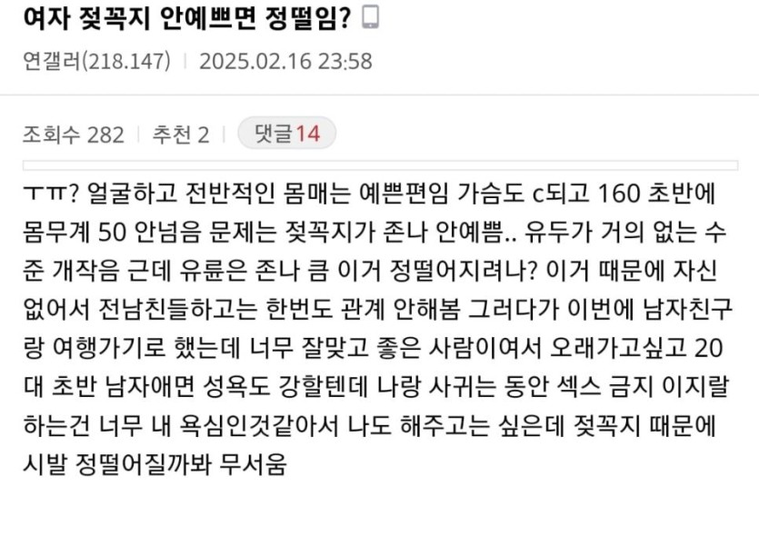 여자 젖꼭지 안예쁘면 정떨임?